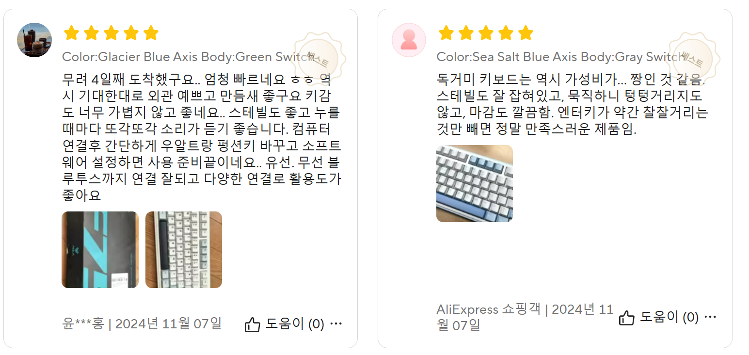 저는 한국인들 후기만 믿어요. 최소 몇백개에서 몇천개이상 팔리고 한국인들 후기가 많은 제품중에서 골랐는데, 요즘 알리 배송속도가 어마무시 합니다. 일주일 안되서 받으신 분들 많아요.