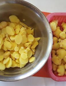 반응형 생강1 편강,초생강 한번에 만들기 편강과,초생강 한번에 만들기 편강과 초생강은 얇게 저며야 먹기게 맛나니까 최대한 얇게 썰어야 하는데 잠시 부탁했더니 ㅠ,ㅠ 다 두껍게 썰어놨다ㅠ.ㅠ 이씽 벌써 망함 ㅋㅋㅋ 초생강과 생강은 맵지 않은게 중요하니까 물에 반나절 정도 담궈 둔다. 요렇게 담궈줘야 매운 맛이 빠진다. 이렇게만 해준뒤 초생강을 재울 촛물을 설탕소금 식초를 넣어서 끓여 준뒤 뜨거울때 부어 준다. 부어 놓으면 이 상태 ㅠ.ㅠ 벌써 사진으로 만도 두꺼운게 보인다. 일본사람들은 채썰어서 먹기도 하니까 ㅠ.ㅠ 나중에 먹어보니 매운 맛이 잘 빠져서 두꺼워도 괜찮았다. 김밥쌀때 단무지가 없어서 대신 반찬으로 싸갔더니 다들 싹싹 먹었다는 ㅋㅋ 병을 소독해뒀다가 이렇게 뜨거울때 부어 주면 된다. 일주일 정도 있다가 먹으면 된다. 초생강을 만들어 .. 2017. 8. 10. 이전 1 다음 반응형